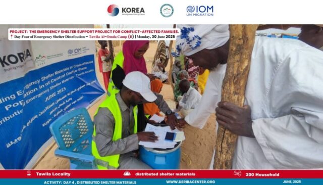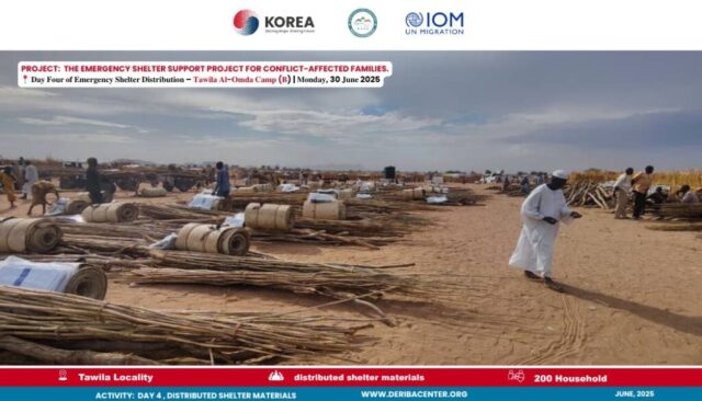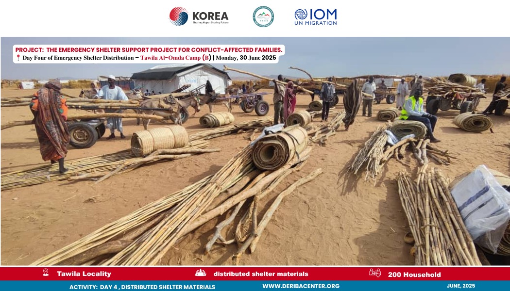 On the fourth consecutive day, we continue distributing emergency shelter materials to displaced families in Tawila Al-Omda Camp (B) – North Darfur, under the Emergency Shelter Project funded by the Ministry of Foreign Affairs of the Republic of Korea in partnership with IOM.