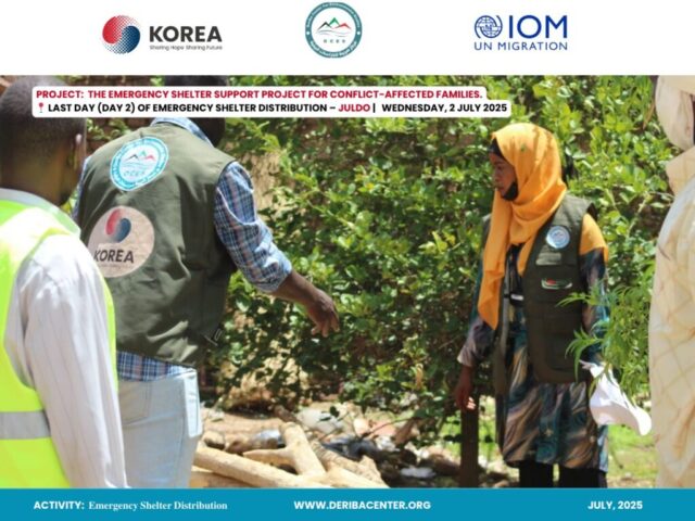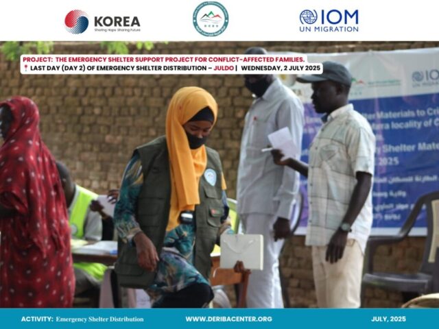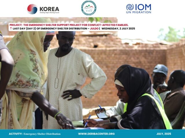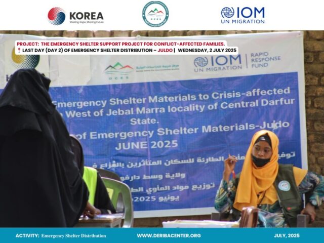 ✨ Today, our team concluded the two-day emergency shelter distribution for displaced families in Juldo – West Jebel Marra, under the Emergency Shelter Project funded by the Ministry of Foreign Affairs of the Republic of Korea in partnership with IOM.