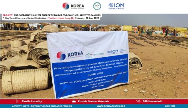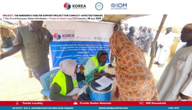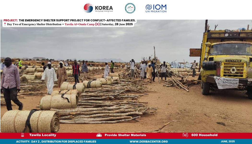 Today, Saturday, 28 June 2025, marks the second day of distributing emergency shelter materials to 600 displaced families in Tawila Al-Omda Camp (B) – North Darfur, under the Emergency Shelter Project funded by the Ministry of Foreign Affairs, Republic of Korea, and implemented in partnership with IOM.