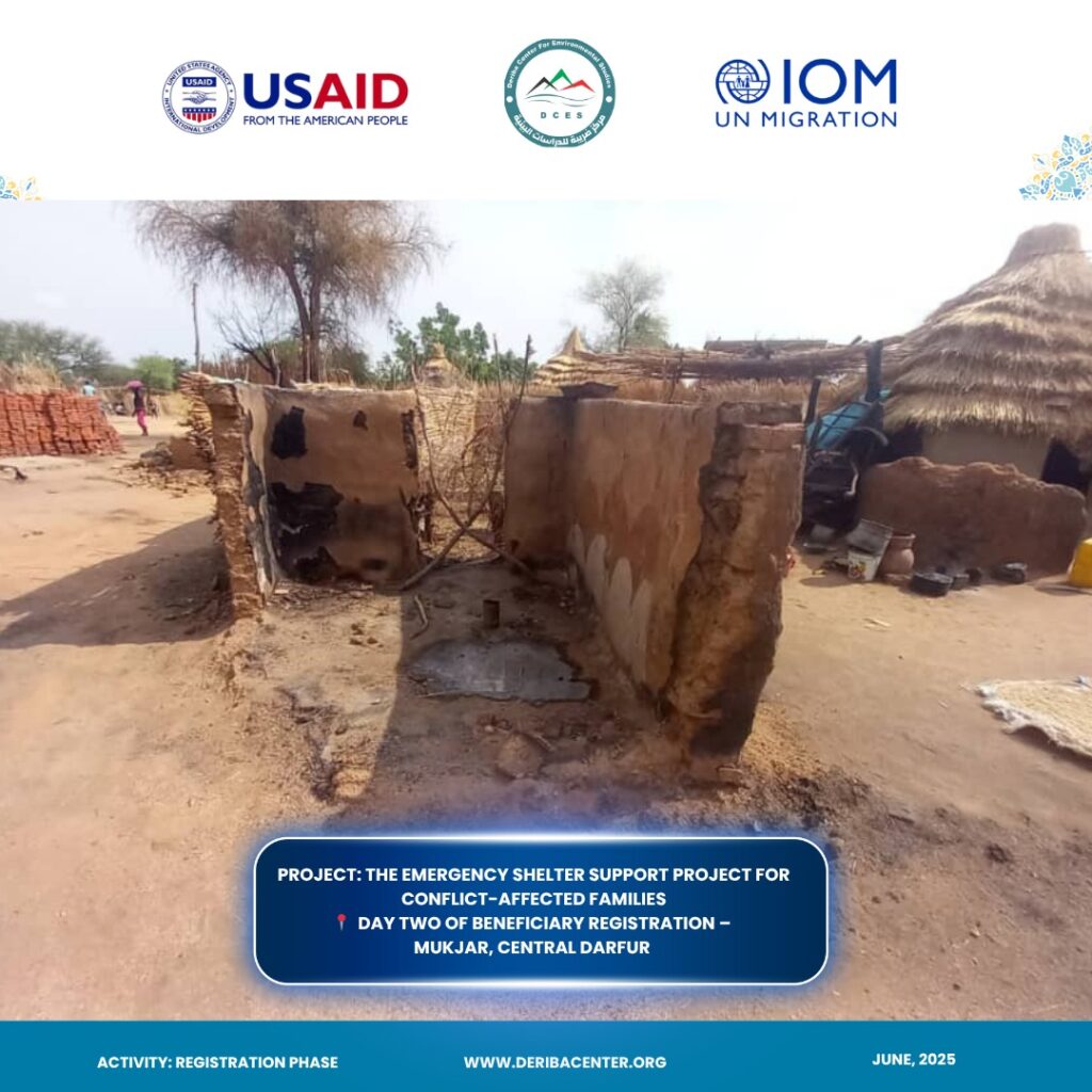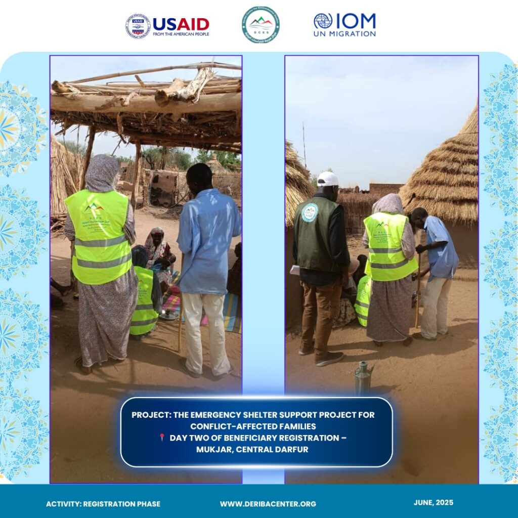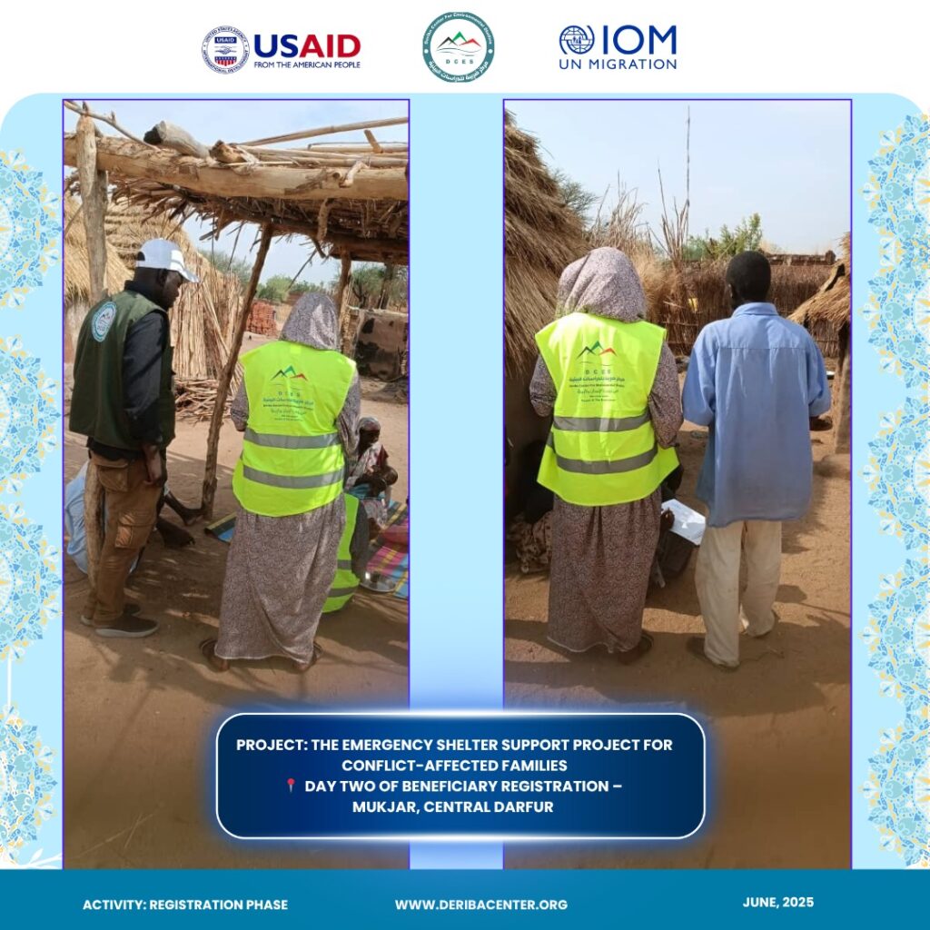 On Sunday, 22 June 2025, the first phase of beneficiary registration for conflict-affected households began in Mukjar locality – Central Darfur, as part of the Emergency Shelter Support Project, generously funded by USAID and implemented in partnership with IOM.