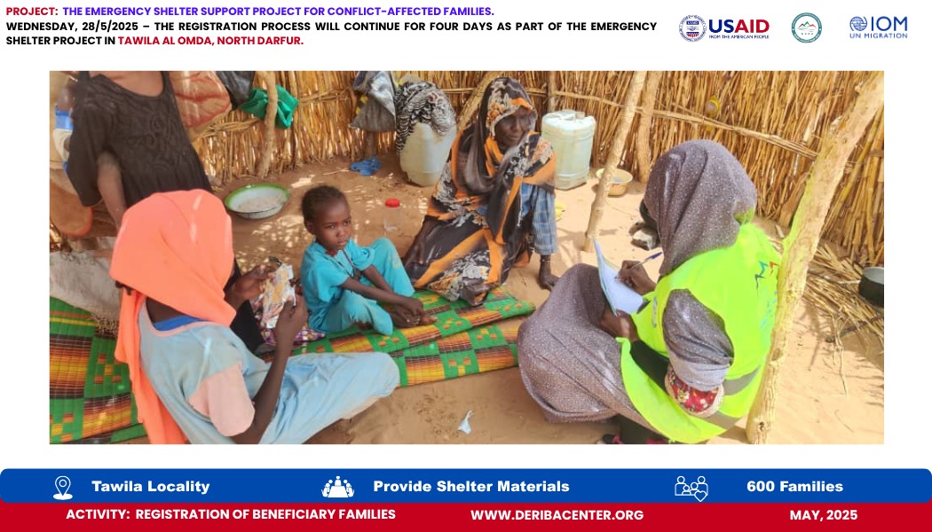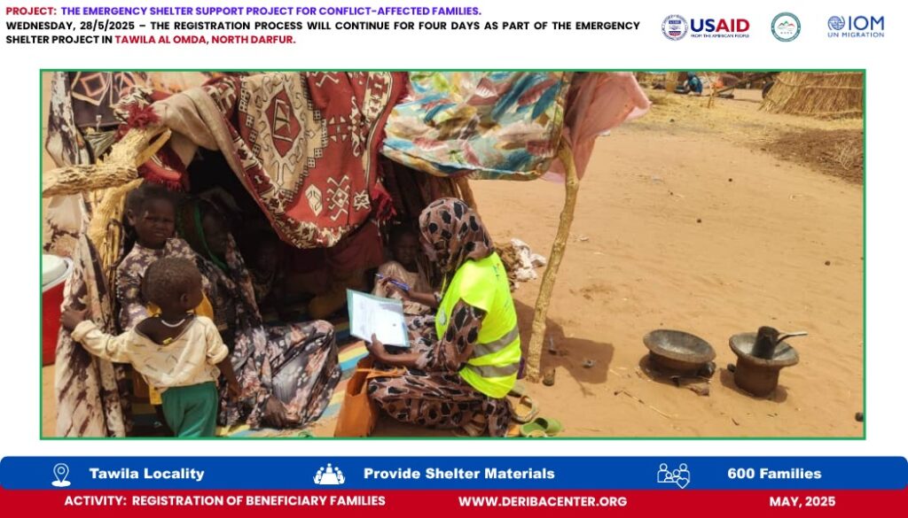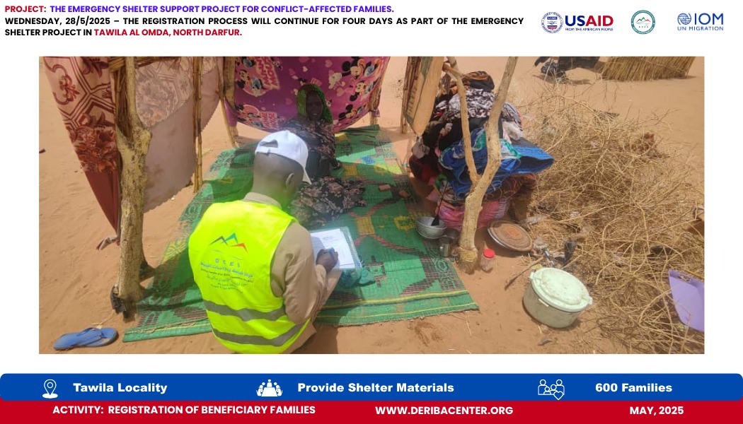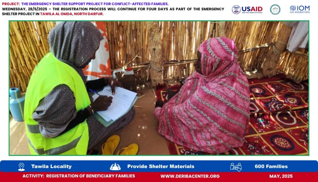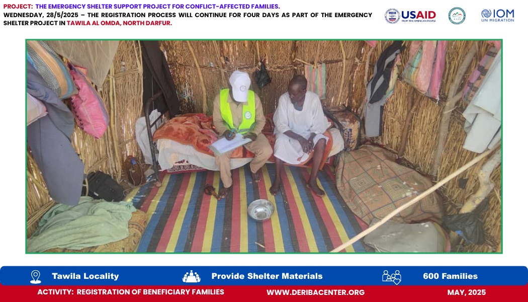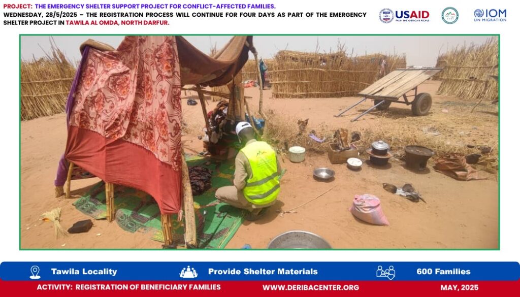Today, Wednesday, 28 May 2025, we officially launched the registration process for 600 newly displaced households in Tawila Al-Omda Camp, North Darfur. This effort is part of the Emergency Shelter Project, generously funded by USAID and implemented in partnership with IOM.